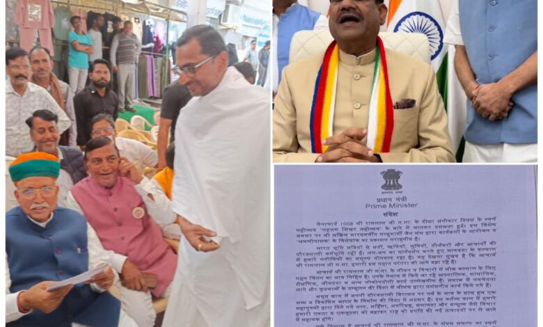 प्रधानमंत्री मोदी ने भी आचार्य श्री जी की दीक्षा दिवस पर नमन करते हुए बधाई संदेश पत्र प्रेषित किया जिसका बाँचन लहर चंद जी सिरोहिया,जैन बैंगलोर सांसद ने