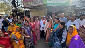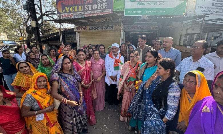 नर्मदा स्वच्छता अभियान से जुड़ी बहनों ने पुष्प वर्षा कर किया सांसद का भव्य स्वागत