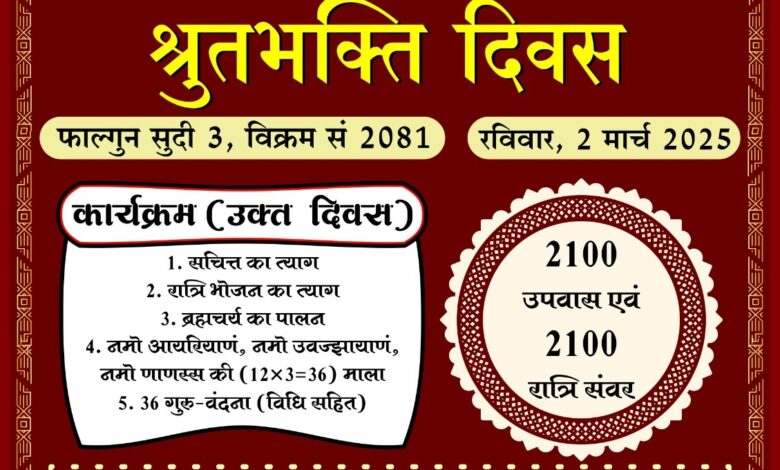 रविवार को श्रुत भक्ति दिवस खिरकिया समता भवन में सामूहिक आराधना के साथ मनाया जाबेगा।