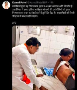 *पूर्व कृषि मंत्री कमल पटेल भाजपा अनुसूचित जनजाति मोर्चा के पूर्व जिला अध्यक्ष से जिला चिकित्सालय मिलने पहुंचे*…..*अपने x हैंडल पर पोस्ट शेयर की*….*अपहरण के बाद मारपीट की घटना की निंदा की* … *हरदा एसपी से फोन पर बात कर त्वरित कार्यवाई की मांग की*