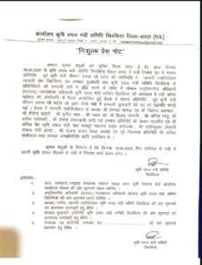 आज देर शाम खिरकिया कृषि उपज मंडी ने प्रेस नोट जारी कर दोनो पक्षों के सहमत होने और शनिवार में कृषि उपज मंडी में चालू रहने बाबद प्रेस नोट जारी किया ….इस अवसर पर कृषि उपज मंडी में एसडीएम अशोक डेहरिया एसडीओपी रोवर्ट ग्रेवाल मंडी सचिव सहित भाजपा के वरिष्ट नेता व्यापारी मजदूर हम्माल प्रतिनिधि उपस्थित हुए