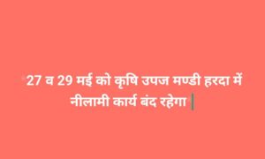 *27 व 29 मई को कृषि उपज मण्डी हरदा में नीलामी कार्य बंद रहेगा*