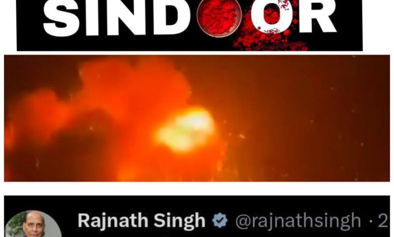 *भारतीय सेना ने पाकिस्तान पर किया हमला*.. *(देखे वीडियो)* . *नौ आतंकी ठिकानों को निशाना बनाया*.. *एयर स्ट्राइक को ऑपरेशन सिंदूर नाम दिया* .*पाकिस्तान में मची है दहशत हमले का वीडियो हुआ वायरल*… *(देखे वीडियो)* .*रक्षा मंत्री राजनाथ सिंह ने देर रात x पोस्ट कर लिखा भारत माता की जय*. … *पीएमओ सहित पूरा मंत्री मंडल रातभर जागा*