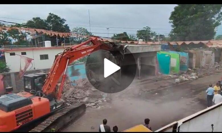 *हरदा रेलवे स्टेशन से लगी 35 दुकानों पर चला बुलडोजर*.. ..*(देखे वीडियो)* ….*बड़ी संख्या में पुलिस बल और अधिकारियो कर्मचारी है मौजूद*