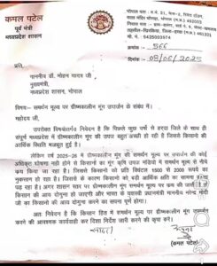 उसके बाद पूर्व कृषि मंत्री किसान नेता कमल पटेल ने मुख्यमंत्री डॉक्टर मोहन यादव को मूंग की सरकारी खरीद के लिए पत्र लिखा है