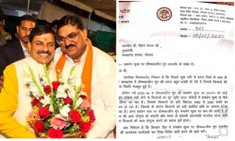 उसके बाद पूर्व कृषि मंत्री किसान नेता कमल पटेल ने मुख्यमंत्री डॉक्टर मोहन यादव को मूंग की सरकारी खरीद के लिए पत्र लिखा है