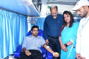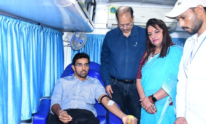 हरदा 4 जून 2025/ हरदा जिले में नागरिकों को रक्तदान के प्रति प्रेरित व जागरूक करने के उद्देश्य से कलेक्टर सिद्धार्थ जैन ने प्राथमिक स्वास्थ्य केंद्र रहटगांव में निरीक्षण के दौरान राष्ट्रीय स्वास्थ्य मिशन के ब्लड कलेक्शन वाहन में रक्तदान किया। इस दौरान मुख्य चिकित्सा एवं स्वास्थ्य अधिकारी डॉ. एच. पी. सिंह व एसडीएम श्री महेश बड़ोले, बीएमओ डॉ. एम. के. चौरे, जिला टीकाकरण अधिकारी डॉ. शैलेन्द्र परिहार व डॉ मृत्युंजय गहलोत भी मौजूद थे।