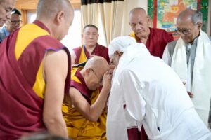 संसद की शिक्षा, महिला, बाल, युवा एवं खेल मामलों की 16 सदस्यीय स्थायी समिति के लेह लद्दाख अध्ययन दौरे के दौरान नर्मदापुरम नरसिंहपुर लोकसभा सांसद दर्शन सिंह चौधरी ने तिब्बत में सबसे प्रभावशाली बौद्ध धर्म की गेलुग्पा परंपरा के प्रमुख, आध्यात्मिक गुरु दलाई लामा से मुलाकात कर शुभाशीष प्राप्त किया। सांसद दर्शन सिंह चौधरी ने बताया कि तिब्बती बौद्ध धर्म में, दलाई लामा जी को करुणा के बुद्ध का अवतार माना जाता है। ऐसी मान्यता है कि वे एक ऐसे व्यक्ति हैं जिन्होंने दूसरों की मदद करने के लिए बुद्ध बनने से इनकार कर दिया और पुनर्जन्म लेने का फैसला किया। दलाई लामा का पद तिब्बती बौद्ध धर्म में एक महत्वपूर्ण भूमिका निभाता है। सांसद दर्शन सिंह चौधरी ने जब दोनों हाथ जोड़कर दलाई लामा का अभिवादन किया तो उन्होंने आत्मीय पूर्वक दोनों हाथों से पकड़ कर अभिवादन को शिरोधार्य किया।