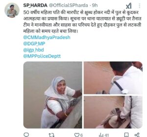 *घर पर पति से झगड़ा होने के बाद पत्नी पहुंची नदी में छलांग लगाने हरदा यातायात पुलिस के जवानों ने अजनाल नदी पुल से लटक रही महिला की बचाई जान*….*(देखे वीडियो*)…. *हरदा एसपी अभिनव चौकसे ने x हैंडल पर शेयर किया वीडियो पुलिस जवानों की सराहना की* *हरदा एसपी अभिनव चौकसे ने कहा यातायात पुलिस के जवानों को वीरता पुरस्कार से सम्मानित करेंगे हरदा एसपी ने बताया पूरा मामला*…..*(देखे वीडियो)*
