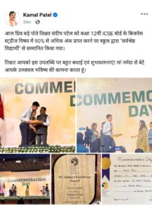 जानकारी अनुसार पूर्व कृषि मंत्री कमल पटेल के बड़े पोते तिक्षत ने 12 वी क्लास ICSE बोर्ड में बिजनस स्टडी में 90 % अंक हासिल किए है वास्तव में ये बड़ी सफलता है