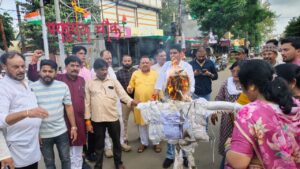 मध्य प्रदेश भारतीय जनता पार्टी प्रत्येक जिला केंद्र पर प्रदेश कांग्रेस के अध्यक्ष जीतू पटवारी द्वारा महिलाओं के खिलाफ की गई अभद्र भाषा का प्रयोग एवं उनको शराबी बताने की घोर निंदा के साथ महिला मोर्चा द्वारा पुतला दहन का कार्यक्रम किया गया जिला अध्यक्ष अनीता अग्रवाल ने बताया कि आज परशुराम चौक पर महिला मोर्चा एवं भारतीय जनता पार्टी के कार्यकर्ता जिला अध्यक्ष समेत सभी ने जीतू पटवारी कि बयान की घोर निंदा करते हुए पुतला दहन किया।