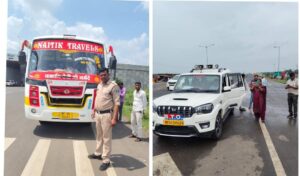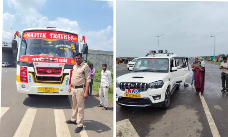 हरदा 24 सितम्बर 2025/ शासन के निर्देशानुसार हरदा जिले के विभिन्न मार्गाे पर 22 सितम्बर से 5 अक्टूबर तक विशेष चेकिंग अभियान आयोजित कर वाहनो को चेक किया जा रहा है। जिला परिवहन अधिकारी श्री राकेश अहाके ने बताया कि चेकिंग अभियान के दौरान बकाया कर, बिना पंजीयन, अस्पष्ट रूप से पंजीयन क्रमांक अंकित होने, बिना बीमा, बिना पीयूसी, बिना फिटनेस और बिना परमिट के संचालित यात्री बस, स्कूल बस, ऑटो रिक्शा एवं लोडिंग वाहन, डम्पर वाहनो की चेंकिग की जा रही है। इसी क्रम में बुधवार को चेकिंग अभियान के दौरान बसों व अन्य वाहनों को चेक किया गया। कार्यवाही के दौरान 4 यात्री बसों को बगैर परमिट, बिना व्हीएलटीडी, बिना एसएलडी एवं अन्य 10 वाहनों पर मोटरयान अधिनियम का उल्लंघन करने पर नियमानुसार चालानी कार्यवाही की गई। इस दौरान कुल 21 हजार रूपये समन शुल्क वसूल किया गया। इस दौरान वाहन चालको को नियमों का पालन करते हुए वाहन संचालन की हिदायत दी गई।
