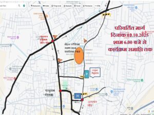 दिनांक 02.10.2025 को विजयादशमी पर्व पर रावण दहन कार्यक्रम नेहरू स्टेडियम हरदा में आयोजित किया जायेगा। कार्यक्रम स्थल पर नागरिकों को किसी प्रकार की असुविधा न हो तथा यातायात व्यवस्था सुचारू एवं सुरक्षित बनी रहे, इसके लिए यातायात पुलिस हरदा द्वारा शाम 06:00 बजे से मार्ग परिवर्तित (डायवर्शन) व्यवस्था लागू की जाएगी।