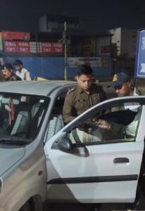 गाड़ियों की जांच करते ट्रैफिक टी आई उमेश सिंह ठाकुर