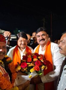 इस अवसर पर पूर्व कृषि मंत्री किसान नेता कमल पटेल भाजपा जिला अध्यक्ष राजेश वर्मा ने केबिनेट मंत्री कैलाश विजयवर्गीय मांधाता विधायक नारायण पटेल का स्वागत अभिनंदन किया इस अवसर पर युवा नेता संदीप पटेल भी उपस्थित थे