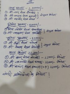 सभी पुरस्कार एवं ईनाम कार्यक्रम के आयोजक रेकश जी शर्मा, इन्नू पटेल एवं राजेश शर्मा उत्तम तेनगुरिया द्वारा वितरित किए गए।
