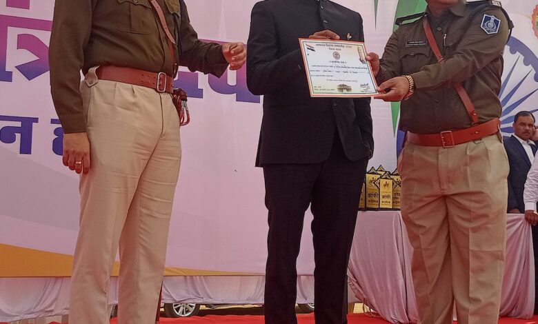 समारोह के दौरान कलेक्टर सिद्धार्थ जैन एवं पुलिस अधीक्षक शशांक द्वारा संयुक्त रूप से टीआई संतोष सिंह चौहान को प्रशस्ति-पत्र प्रदान कर सम्मानित किया गया। अधिकारियों ने उनके नेतृत्व में क्षेत्र में सुरक्षा का बेहतर वातावरण निर्मित होने तथा पुलिस-जन विश्वास को मजबूत करने की सराहना की।