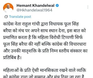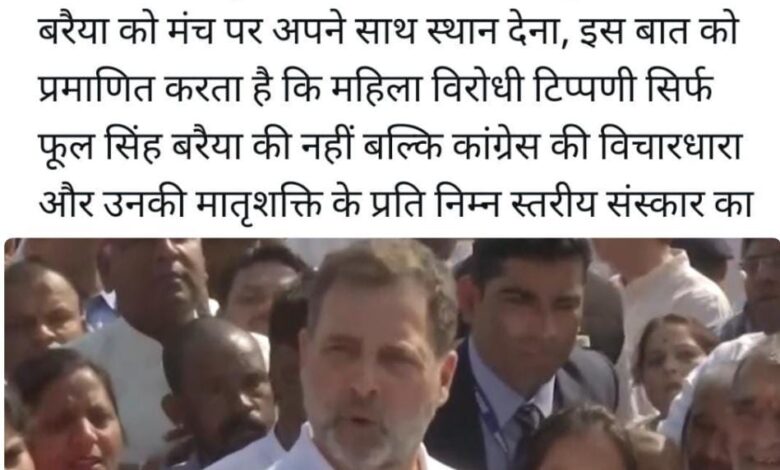 वहीं राहुल गांधी के इंदौर दौरे को लेकर भाजपा ने भी निशाना साधा प्रदेश भाजपा अध्यक्ष ने कांग्रेस के मंच पर फूल सिंह वरैया को जगह देने पर तंज कसा कहा महिलाओं के प्रति ऐसी मानसिकता रखने वाले व्यक्ति को कांग्रेस द्वारा जो सम्मान ओर मंच दिया जा रहा है वो उनकी सोच को प्रदर्शित करता है