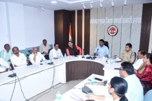 बैठक में विधायक हरदा डॉ. आर.के. दोगने, पुलिस अधीक्षक श्री शशांक, सीईओ जिला पंचायत श्रीमती अंजली जोसेफ जोनाथन, किसान संघ के अध्यक्ष श्री महेश शर्मा सहित समिति के अन्य सदस्य, विभिन्न विभागों के अधिकारी एवं कृषक उपस्थित रहे।